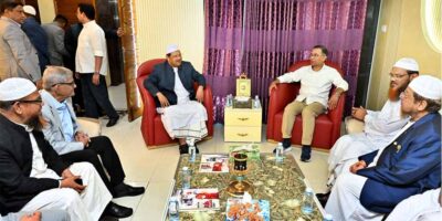 Last Updated on 3 hours by zajira news জাজিরা নিউজ ডেস্ক: ইসলামী আন্দোলন বাংলাদেশের আমির ও চরমোনাই পীর মুফতি সৈয়দ মুহাম্মাদ রেজাউল করীমের বাসায় সৌজন্য সাক্ষাৎ করতে গেছেন বিএনপি চেয়ারম্যান তারেক রহমান। সোমবার (১৬ ফেব্রুয়ারি) সন্ধ্যা ৭টা ১৫ মিনিটে মুফতি সৈয়দ মুহাম্মাদ রেজাউল করীমের রমনার বাসায় পৌঁছান তারেক রহমান। সেখানে তারেক রহমানকে স্বাগত জানান মুফতি রেজাউল করীম। এ সময় তার সঙ্গে ছিলেন মহাসচিব (সেক্রেটারি জেনারেল) অধ্যক্ষ হাফেজ মাওলানা ইউনুস আহমদ। তারেক রহমানের সঙ্গে ছিলেন বিএনপির মহাসচিব মির্জা ফখরুল ইসলাম আলমগীর এবং স্থায়ী কমিটির সদস্য ও নির্বাচন পরিচালনা কমিটির চেয়ারম্যান নজরুল ইসলাম খান। এ সময় ইসলামী আন্দোলনের আমিরের বাসার সামনে আইনশৃঙ্খলা […]বিস্তারিত