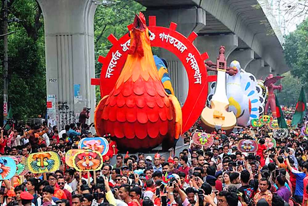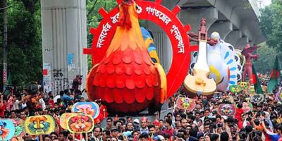 Last Updated on 5 hours by zajira news জাজিরা নিউজ ডেস্ক: উৎসবমুখর ও বর্ণাঢ্য পরিবেশে শান্তিপূর্ণভাবে শেষ হয়েছে ১৪৩৩ বঙ্গাব্দের বৈশাখী শোভাযাত্রা। মঙ্গলবার (১৪ এপ্রিল) সকাল ৯টায় ঢাকা বিশ্ববিদ্যালয়ের চারুকলা অনুষদ প্রাঙ্গণ থেকে জাতীয় সংগীত পরিবেশনের মাধ্যমে শোভাযাত্রার আনুষ্ঠানিক সূচনা হয়। শোভাযাত্রাটি চারুকলা অনুষদ থেকে শুরু হয়ে শাহবাগ, দোয়েল চত্বর ও বেগম রোকেয়া হল এলাকা ঘুরে আবার চারুকলা অনুষদের সামনে এসে শেষ হয়। এতে অংশ নেন বিশ্ববিদ্যালয়ের উপাচার্য অধ্যাপক এ বি এম ওবায়দুল ইসলাম, উপ-উপাচার্য সায়মা হক বিদিশা, উপ-উপাচার্য ড. আব্দুস সালাম, বাংলাদেশ উন্মুক্ত বিশ্ববিদ্যালয়ের উপাচার্য ছিদ্দিকুর রহমান খান, জাতীয় বিশ্ববিদ্যালয়ের উপ-উপাচার্য লুৎফর রহমানসহ বিভিন্ন অনুষদের ডিন, শিক্ষক, শিক্ষার্থী, বিভিন্ন […]বিস্তারিত
