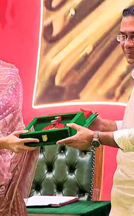 Last Updated on 7 months by zajira news আন্তর্জাতিক ডেস্ক, জাজিরা নিউজ: এবারের এশিয়া কাপে ইতিহাসে প্রথমবার ফাইনালে মুখোমুখি হয় ভারত-পাকিস্তান। টানটান উত্তেজনাপূর্ণ লড়াইয়ে ৫ উইকেট ও ২ বল হাতে রেখে জয় পেয়েছে ভারত। এক আসরে টানা তিনবার চিরপ্রতিদ্বন্দ্বী পাকিস্তানকে হারিয়ে টুর্নামেন্ট স্মরণীয় করে রেখেছে দলটি। তবে, হ্যান্ডশেক কাণ্ড থেকে শুরু করে ফাইনালের পর এসিসির পাকিস্তানি চেয়ারম্যানের হাত থেকে শিরোপা গ্রহণের অপারগতার মতো ঘটান ছাপিয়ে গেছে খেলার মাঠের রোমাঞ্চকে। গতরাতে এশিয়া কাপের ফাইনালে পাকিস্তানকে হারিয়ে রেকর্ড নবমবারের মতো এশিয়াসেরা হয়েছে ভারত। পুরো টুর্নামেন্টজুড়ে চলা ভারত-পাকিস্তান ‘যুদ্ধাবস্থা’ ফাইনালেও বজায় ছিল। গ্রুপ পর্বের প্রথম ম্যাচে পাকিস্তানের অধিনায়ক সালমান আলী আগা ও খেলোয়াড়দের […]বিস্তারিত