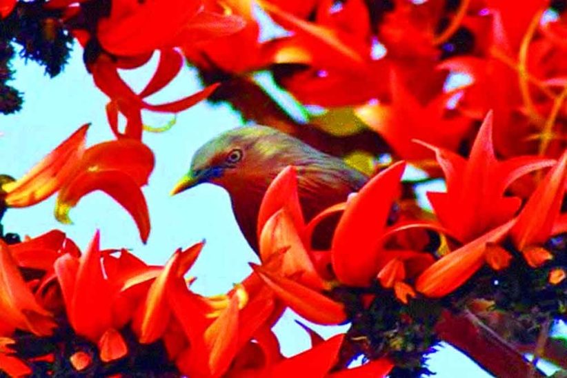অজস্র পলাশ, শিমুল, কৃষ্ণচূড়ার রক্তিম আভায় বনে লাগছে আগুন। তার আঁচ লাগছে নবীন-প্রবীণ মনেও। ভোরের বাতাসে জেগে উঠছে নতুন প্রাণ।