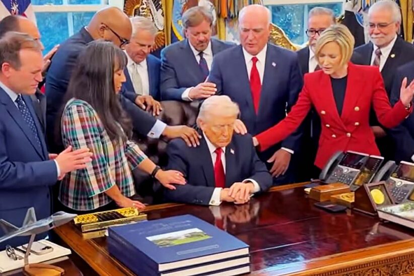 বিশ্ব গণমাধ্যমে সেই বিশেষ প্রার্থনার একটি ছবি প্রকাশিত হয়েছে। সেখানে যাজক গ্রেগ লরিসহ কয়েকজন ধর্মীয় নেতাকে দেখা যায়—তাঁরা ট্রাম্পের কাঁধে হাত রেখে ইরানের বিরুদ্ধে যুদ্ধে বিজয়ের জন্য প্রার্থনা করছেন। এই ব্যক্তিরা বহু বছর ধরে আমেরিকানদের এমন একটি বৃহৎ যুদ্ধের জন্য প্রস্তুত করে আসছেন, যা অ্যান্টিক্রাইস্টের (খ্রিষ্টধর্মমতে, যিশুখ্রিষ্টের বিরোধী অশুভ শক্তি) আবির্ভাবের আগে ঘটবে বলে তাঁরা বিশ্বাস করেন। এই যুদ্ধকে বলা হয় আর্মাগেডন।