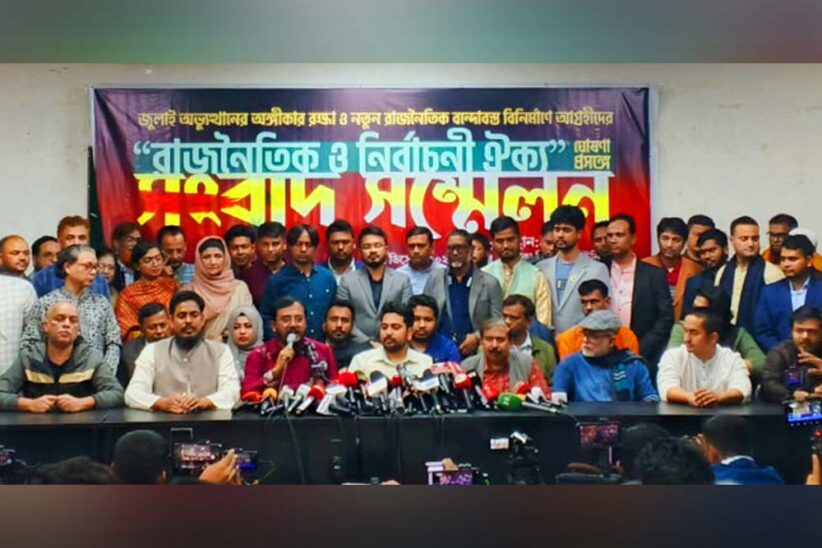 অনলাইন ডেস্ক, জাজিরা নিউজ: জাতীয় নাগরিক পার্টি (এনসিপি), আমার বাংলাদেশ পার্টি (এবি পার্টি) ও বাংলাদেশ রাষ্ট্র সংস্কার আন্দোলন—এই তিন দল মিলে জুলাই অভ্যুত্থানের অঙ্গীকার রক্ষা এবং নতুন রাজনৈতিক বন্দোবস্ত বিনির্মাণে আগ্রহীদের নিয়ে ‘রাজনৈতিক ও নির্বাচনী ঐক্য’ নামের নতুন একটি নির্বাচনী জোট ঘোষণা করেছে।