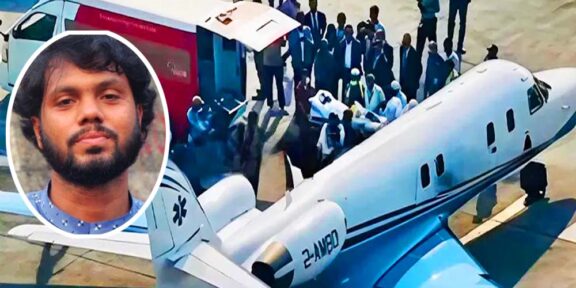 সোমবার (১৫ ডিসেম্বর) দুপুর ১টা ৫৫ মিনিটের দিকে হযরত শাহজালাল আন্তর্জাতিক বিমানবন্দর থেকে সিঙ্গাপুরের উদ্দেশে উড্ডয়ন করে এয়ার অ্যাম্বুলেন্সটি।