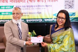 রবিবার (১৪ সেপ্টেম্বর) কুয়ালালামপুরের জি টাওয়ারে নির্বাচন কমিশনার মোঃ আনোয়ারুল ইসলাম সরকার প্রধান অতিথি হিসেবে উপস্থিত থেকে মতবিনিময় করেন এবং জাতীয় পরিচয় পত্র (স্মার্টকার্ড) বিতরণ করেন। সভায় সভাপতিত্ব করেন ভারপ্রাপ্ত হাইকমিশনার মোসাম্মাত শাহানারা মনিকা ।