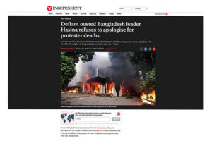 দ্য ইনডিপেনডেন্ট তাদের সাক্ষাৎকারভিত্তিক প্রতিবেদনে বলেছে, ১৫ বছরের বেশি সময় কঠোরভাবে দেশ শাসন করা হাসিনা এখন ভারতে নির্বাসনে রয়েছেন। যখন তাঁকে জিজ্ঞেস করা হয়, গত বছর নিহত আন্দোলনকারীদের পরিবারের কাছে তিনি ক্ষমা চাইবেন কি না, তখন হাসিনা বলেন, ‘আমি আমাদের জাতি হিসেবে হারানো প্রতিটি সন্তান, ভাই-বোন, আত্মীয় ও বন্ধুর জন্য শোক প্রকাশ করি এবং তা করতে থাকব।’