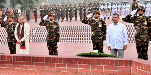 অনলাইন ডেস্ক: মহান স্বাধীনতা ও জাতীয় দিবস উপলক্ষে রাজধানীর পুরাতন বিমানবন্দরের জাতীয় প্যারেড স্কয়ারে চলছে কুচকাওয়াজ ও মনোজ্ঞ ফ্লাইপাস্ট। জাঁকজমক এ উদযাপন অনুষ্ঠানে উপস্থিত আছেন রাষ্ট্রপতি মো. সাহাবুদ্দিন ও প্রধানমন্ত্রী তারেক রহমান।