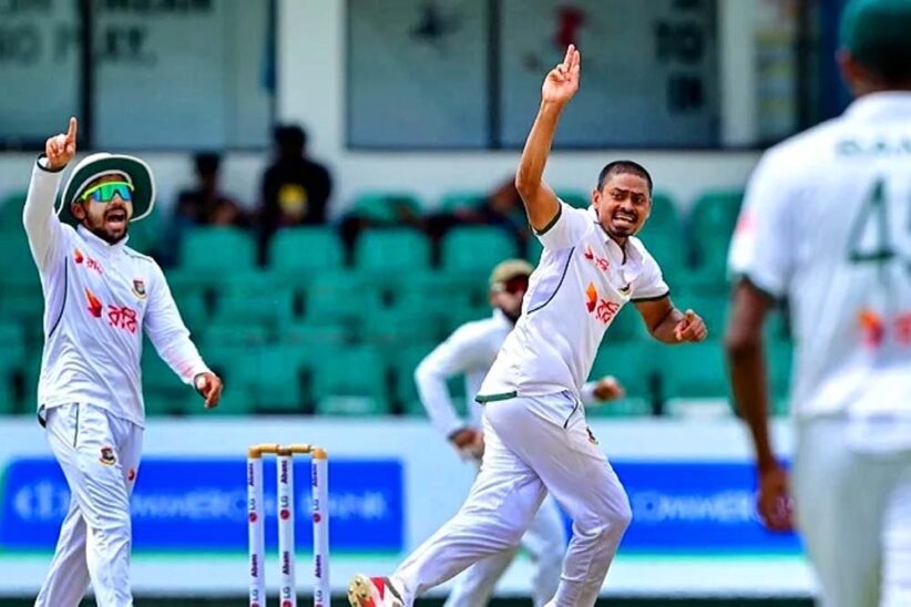 ২২ রান যোগ হতেই লঙ্কান শিবিরে আঘাত হানেন নাহিদ রানা। ৮৯তম ওভারের শেষ বলে প্রবাত জয়সুরিয়াকে (৩৯ বলে ১০) থার্ড স্লিপে মেহেদী হাসান মিরাজের ক্যাচ বানান টাইগার পেসার। এই সিরিজে এটি রানার প্রথম উইকেট।