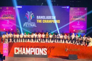 স্পোর্টস ডেস্ক, জাজিরা নিউজ: প্রথমবারের মতো আয়োজিত সাফ নারী ফুটসাল চ্যাম্পিয়নশিপে শিরোপা জিতে দেশে ফিরেছে বাংলাদেশ নারী ফুটসাল দল।