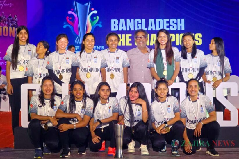 স্পোর্টস ডেস্ক, জাজিরা নিউজ: প্রথমবারের মতো আয়োজিত সাফ নারী ফুটসাল চ্যাম্পিয়নশিপে শিরোপা জিতে দেশে ফিরেছে বাংলাদেশ নারী ফুটসাল দল।