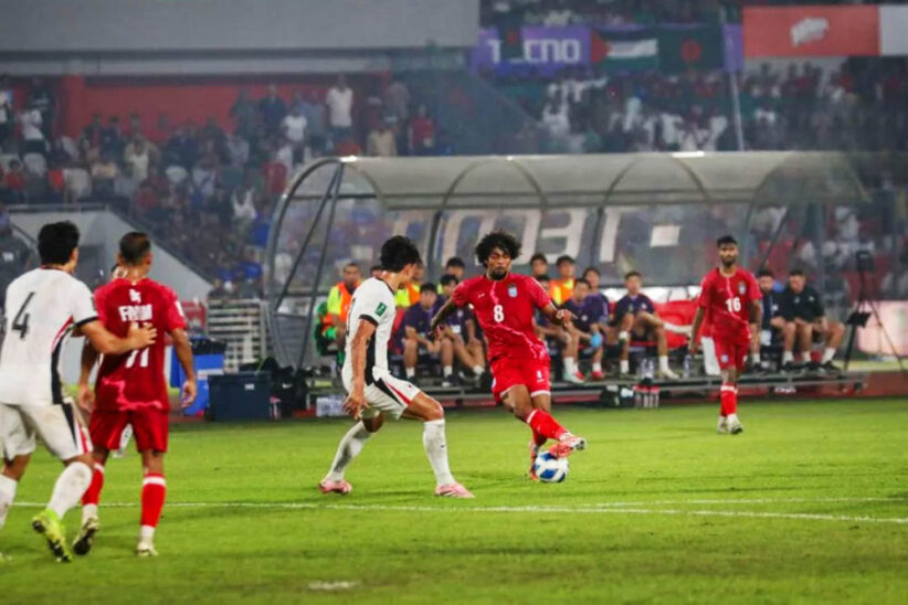 স্পোর্টস ডেস্ক, জাজিরা নিউজ: বাংলাদেশ শুরুটা করেছিল দুর্দান্ত। ম্যাচের মাত্র ১৩ মিনিটে ফ্রি কিক থেকে গোল করে দলকে লিড এনে দেন হামজা চৌধুরী। এরপর তিন গোল হজম করে স্বাগতিকরা। তবে শেখ মোরসালিন ও সামিত সোমের গোলে ম্যাচে সমতা আনে বাংলাদেশ। তবে শেষ মুহূর্তে গোল হজম করে হার নিয়ে মাঠ ছাড়ে বাংলাদেশ।