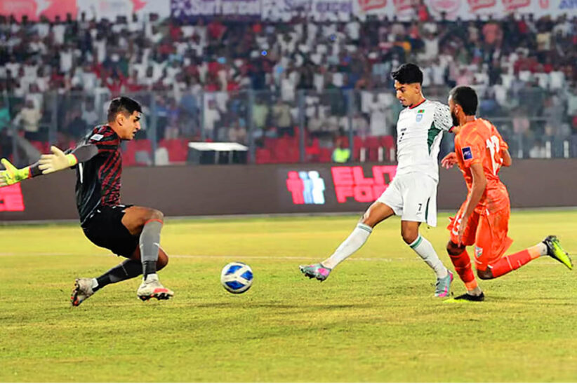 গোল খাওয়ার পর থেকেই ভারত আক্রমণে ঝাঁপিয়ে পড়ে। দ্বিতীয়ার্ধের শুরুতে দুইবার সমতার খুব কাছে চলে যায় তারা, তবে হাল ছাড়েনি বাংলাদেশ। গোলরক্ষক মিতুল মারমা ভুল করলে ভারত গোলের সামনে দাঁড়িয়ে যায়—তখনই দারুণ হেডে বাংলাদেশকে রক্ষা করেন হামজা চৌধুরী। পুরো ম্যাচে যেন তিনি ছিলেন রক্ষণের দেয়াল।