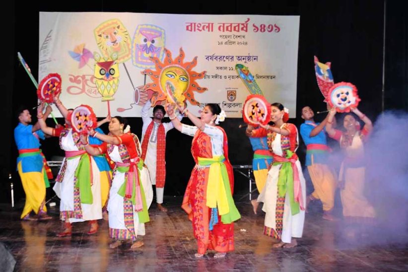 সংক্ষিপ্ত আলোচনা পর্বের পর শুরু হয় বর্ষবরণ অনুষ্ঠান। শুরুতেই পরিবেশিত হয় সমবেত সঙ্গীত ”তুমি নির্মল করো, মঙ্গল করে”, পরিবেশন করে বাংলাদেশ শিল্পকলা একাডেমির শিশু সঙ্গীত দল। পরিচালনায় ছিলেন মুহাম্মদ আনিসুর রহমান। এরপর সমবেত “নৃত্য এসো হে বৈশাখ এসো এসো” পরিবেশন করে স্পন্দন নৃত্যদল, নৃত্য পরিচালনা করেছেন অনিক বোস। একাডেমির নৃত্যশিল্পী এস কে জাহিদ এর পরিচালনায় সমবেত ঢাক নৃত্য পরিবেশন করে বাংলাদেশ শিল্পকলা একাডেমির প্রতিশ্রুতিশীল নৃত্যদল।