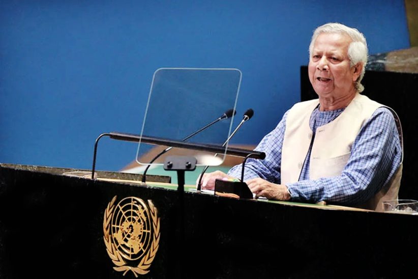 ছাত্রদের নেতৃত্বে জুলাই-আগস্টে বাংলাদেশে যুগান্তকারী পরিবর্তন সংঘটিত হয়েছে উল্লেখ করে অধ্যাপক ইউনূস বলেন, ‘এ ঘটনার প্রেক্ষিতে আজ আমি বিশ্ব সম্প্রদায়ের এ মহান সংসদে উপস্থিত হতে পেরেছি। আমাদের গণমানুষের বিশেষ করে তরুণ সমাজের অফুরান শক্তি আমাদের বিদ্যমান রাষ্ট্রকাঠামো ও প্রতিষ্ঠানগুলোর আমূল রূপান্তরের এক নতুন সম্ভাবনার দ্বার উন্মোচন করেছে।’