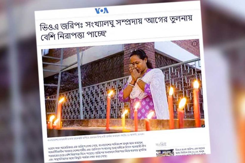 ভয়েস অব আমেরিকার জরিপে দেখা গেছে, মুসলিম উত্তরদাতাদের মধ্যে ৬৬ দশমিক ১ শতাংশ মনে করছেন আওয়ামী লীগ সরকারের চেয়ে অন্তর্বর্তী সরকার সংখ্যালঘুদের বেশি নিরাপত্তা দিচ্ছে। অন্যদিকে ধর্মীয় সংখ্যালঘু উত্তরদাতাদের মধ্যে ৩৯ দশমিক ৫ শতাংশ এই ধারণার সঙ্গে একমত। অর্থাৎ সংখ্যালঘুদের একটি উল্লেখযোগ্য অংশ মনে করে, আগের তুলনায় তারা বেশি নিরাপত্তা পাচ্ছে। জয়তী সরকার নিরাপত্তা নিয়ে শঙ্কায় থাকলেও, তিনিও একটি স্বস্তির জায়গা দেখতে পাচ্ছেন।