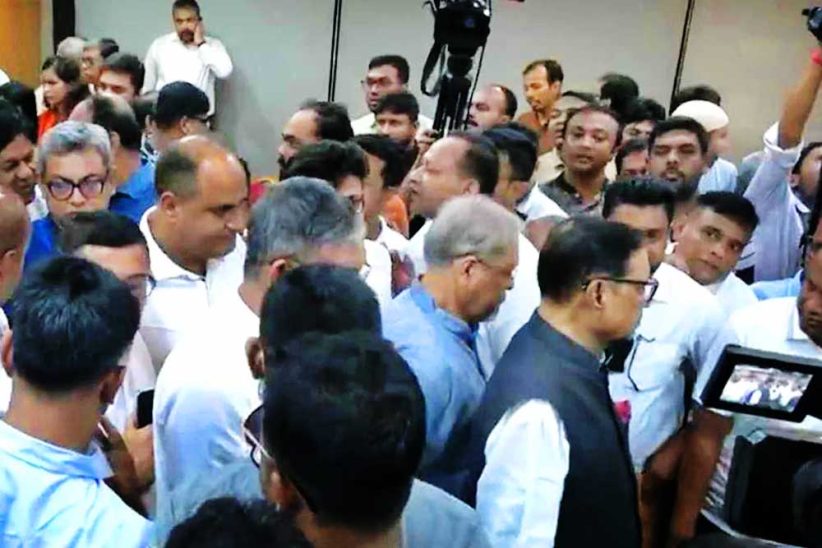 প্রত্যক্ষদর্শীরা জানান, এতে ক্ষুব্ধ হয়ে প্রথমে নিজেদের মধ্যে কথা বলতে থাকেন সাবেক ছাত্রলীগ নেতারা। পরে যা হট্টগোলে রূপ নেয়। কয়েকজন সাবেক ছাত্রলীগ নেতা ওবায়দুল কাদেরকে উদ্দেশ করে বলতে থাকেন, ‘মতবিনিময় সভা ডেকে সংবাদ সম্মেলন করছেন কেন? তাহলে আমাদের ডাকলেন কেন? আগে আমাদের কথা শুনবেন, আলোচনা করবেন, তারপর ব্রিফ করেন। তা না করে সাংবাদিকদের সামনে কথা বলা শুরু করে দিলেন…।