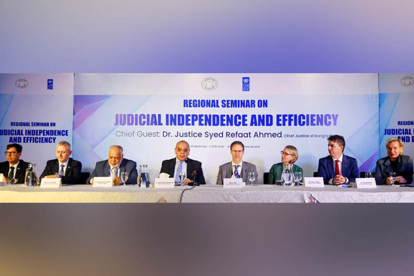 বাংলাদেশ সুপ্রীম কোর্ট ও ইউনাইটেড নেশনস ডেভেলপমেন্ট প্রোগ্রাম (ইউএনডিপি) বাংলাদেশ-এর যৌথ উদ্যোগে আয়োজিত সেমিনারে তিনি আরো বলেন, মামলার জট কমাতে আধুনিক প্রযুক্তির ব্যবহার, ডিজিটাল কেস ম্যানেজমেন্ট এবং বিচারকদের সক্ষমতা বৃদ্ধি জরুরি। আঞ্চলিক সহযোগিতা ও অভিজ্ঞতা বিনিময়ের মাধ্যমে বিচার ব্যবস্থা আরও কার্যকর হবে।