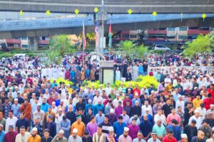 সকালের প্রথম প্রহর থেকেই ঈদের আনন্দে মুখর হয়ে ওঠে কুয়ালালামপুরসহ মালয়েশিয়ার বিভিন্ন মসজিদ ও ঈদগাহ। নতুন পোশাক পরে দলে দলে মুসল্লিরা ছুটে আসেন ঈদুল ফিতরের জামাতে অংশ নিতে। অংশ নেন প্রবাসী বাংলাদেশিরাও।