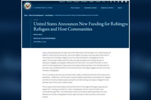 উল্লেখ্য, মার্কিন সরকার ২০১৭ সাল থেকে রোহিঙ্গাদের জন্য ২ দশমিক ৫ বিলিয়ন ডলারেরও বেশি সহায়তা প্রদান করেছে, যার মধ্যে বাংলাদেশে ২ দশমিক ১ বিলিয়ন ডলারের বেশি রয়েছে। বাংলাদেশ এবং এই অঞ্চলের সংকট-পীড়িত জনগোষ্ঠীকে সহায়তা প্রদানে প্রতিশ্রুতিবদ্ধ যুক্তরাষ্ট্র। একইসঙ্গে যুক্তরাষ্ট্র অন্যান্য দাতাদেরকে তাদের সহায়তা অব্যাহত রাখার আহ্বান জানিয়েছে।