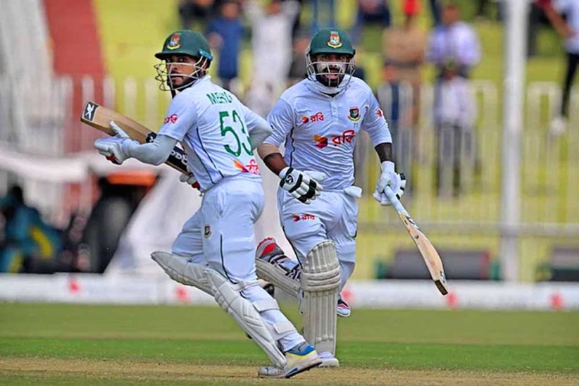 স্পোর্টস ডেস্ক, জাজিরা নিউজ: রাওয়ালপিন্ডিতে রবিবার (১ সেপ্টেম্বর) সকালটা বাংলাদেশের জন্য ছিল ভুতুড়ে। বিনা উইকেটে ১০ রানে তৃতীয় দিন শুরু করেছিল বাংলাদেশ। কিন্তু মুহূর্তেই সফরকারীদের স্কোরকার্ড হয়ে যায় ৬ উইকেটে ২৬ রান। খুররম শেহজাদ আর মীর হামজার বোলিং তোপে একে একে ড্রেসিংরুমে ফেরেন সাকিব আল হাসান-মুশফিকুর রহিমরা।