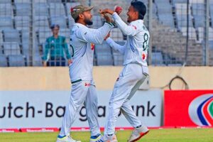 তবে দ্বিতীয় সেশনের মাঝপথেই অপরপ্রান্তের দুই ব্যাটারকে বিদায় করে মুশফিককে জয় উপহার দিল বাংলাদেশ দল।