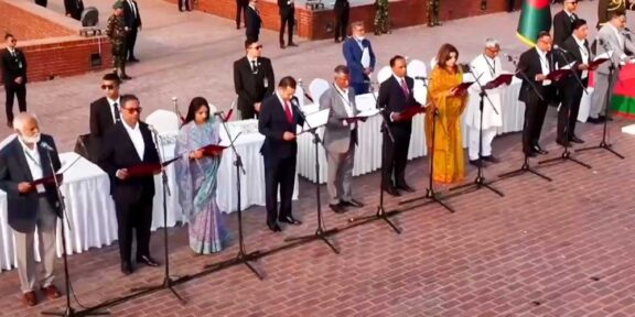 সাধারণত জাতীয় সংসদের স্পিকার শপথ পড়ানোর দায়িত্ব পালন করেন। কিন্তু গণ অভ্যুত্থান-পরবর্তী পরিস্থিতিতে সিইসি এই দায়িত্ব পালন করলেন। শপথ অনুষ্ঠানে দেশি ও বিদেশি অতিথিরা অংশ নেন।