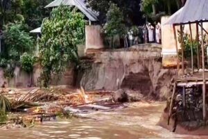 ভাঙনে নদী গর্ভে বিলীন হচ্ছে বসতঘর, দোকানপাটসহ বিভিন্ন স্থাপনা। বর্তমানে ভাঙন আতঙ্কে দিন কাটাচ্ছেন ৫ শতাধিক পরিবার।