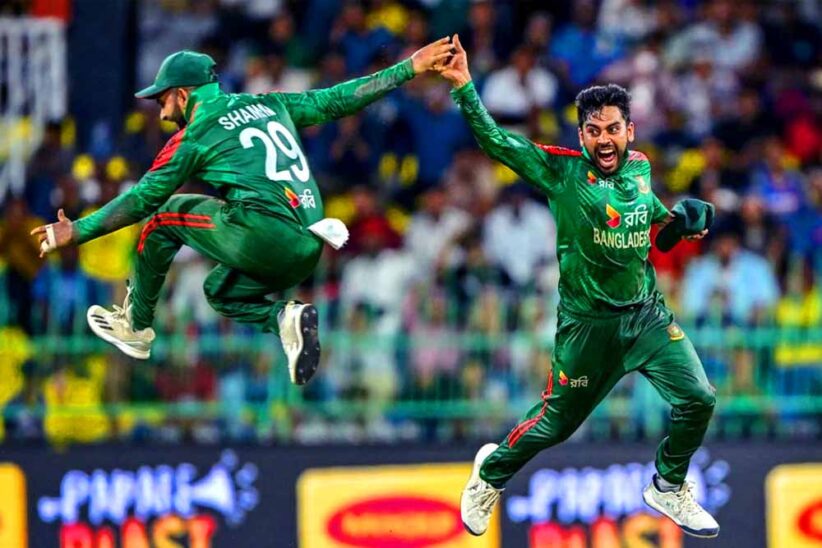 শনিবার (০৫ জুলাই) কলম্বোর আর. প্রেমাদাসা স্টেডিয়ামে টস জিতে আগে ব্যাটিংয়ে নেমে শুরুটা ভালো হয়নি বাংলাদেশের। দলীয় সংগ্রহ ১০ স্পর্শ করতেই বিদায় নেন ওপেনার তানজিদ হাসান তামিম (৭)। এরপর ৬৩ রানের জুটি গড়ে ভালো কিছুর ইঙ্গিত দেন পারভেজ হোসেন ইমন ও নাজমুল হোসেন শান্ত। ইমন ফিফটি তুলে নিলেও ১৪ রান করে বিদায় নেন শান্ত।