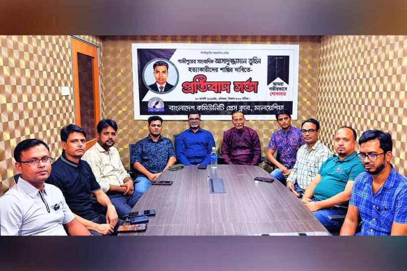মালয়েশিয়া প্রতিনিধি, জাজিরা নিউজ: আলোচিত গাজীপুরের সাংবাদিক আসাদুজ্জামান তুহিন হত্যার প্রতিবাদে এবং হত্যাকারীদের দৃষ্টান্তমূলক শাস্তির দাবীতে প্রতিবাদ সভা করেছে বাংলাদেশ কমিউনিটি প্রেস ক্লাব মালয়েশিয়া।