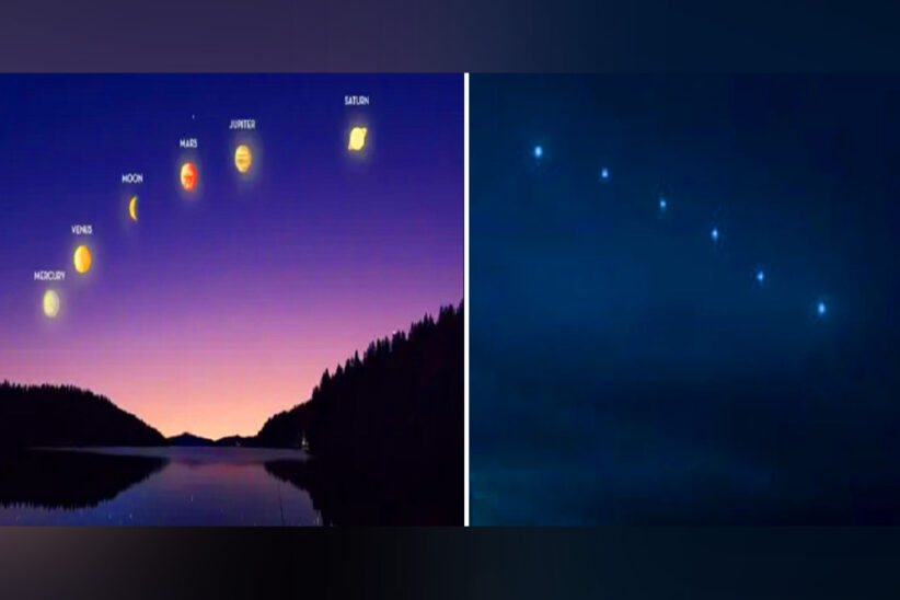 জানা গেছে, সূর্যাস্তের পর প্রায় ৩০ থেকে ৪৫ মিনিট পর্যন্ত এই দৃশ্য দেখা যাবে। এরপর ধীরে ধীরে কয়েকটি গ্রহ দিগন্তের নিচে নেমে যাবে। এই বিন্যাসটি মূলত একটি দৃশ্যমান প্রভাব। রাতের আকাশে গ্রহগুলো কাছাকাছি দেখা গেলেও বাস্তবে গ্রহগুলো একে অপরের থেকে লক্ষ লক্ষ বা কোটি কোটি কিলোমিটার দূরে অবস্থান করছে।